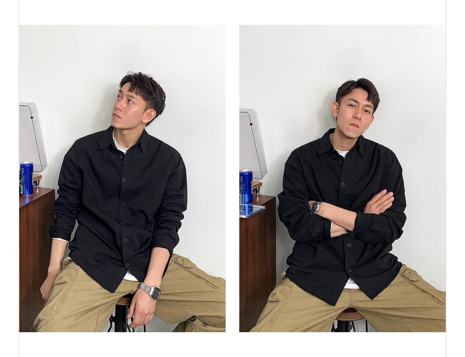 ソリッドカラー 長袖ラペルシャツジャケット
